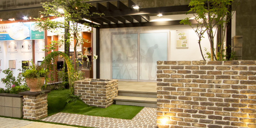 ソイルブルとモダンデザインのパーゴラで、大人にも似合うシックな雰囲気を演出しました。