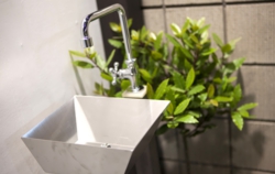 テラスに出て、花壇で栽培した野菜を収穫。横にある立水栓で洗って今日の晩御飯に。