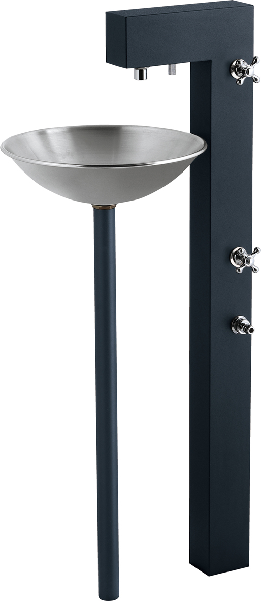 「ガーデンシンク」と聞くと、ガーデングッズや、食器を洗ったりするような大きなサイズのモノを想像するかもしれません。「玄関先のためのガーデンシンク」は、必要な機能だけに絞ったスリムな形になっています。だから、コンパクトな空間にもすっきりとおさまり、玄関先にも設置しやすい。
