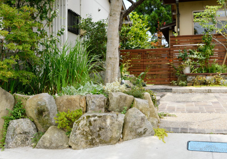 “できるだけ元の植栽や石を活かすこと”があるそう。