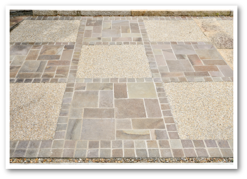 錆色が美しいアプローチの石畳も、