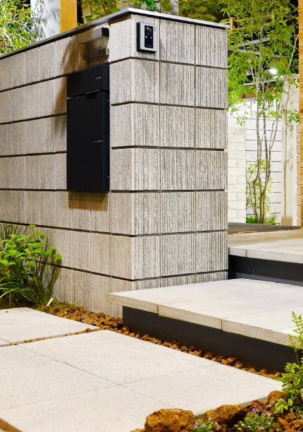 「存在感のある宅配ポストはブロック塀に埋め込み、