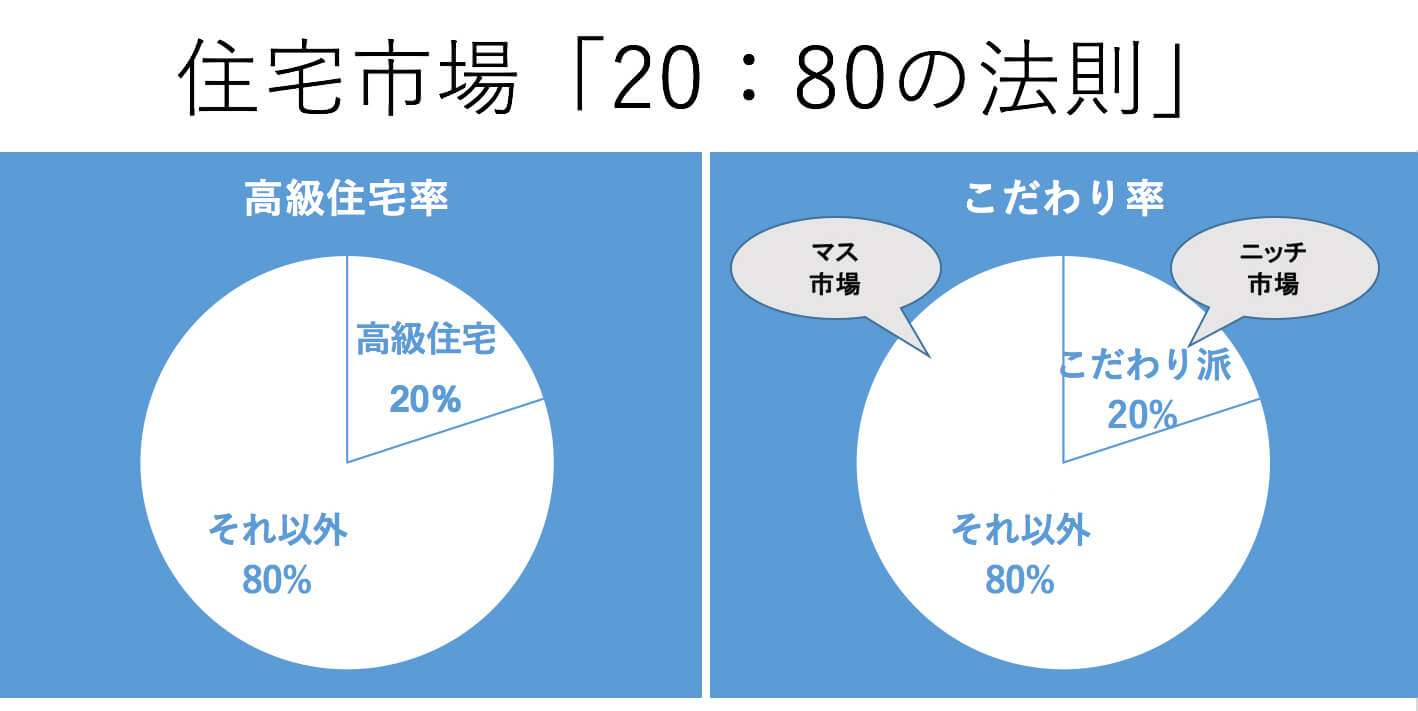 で、こだわりのある2割の層は、自分なりの「家づくりの物差し」を持っていて、その物差しに合う会社を積極的にネットやリアルで探します。