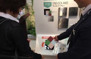 季節や気分でカラーやテクスチャーを簡単に替えることができる表札「着せ替えサイン」など、暮らしに寄り添った新商品を展示。