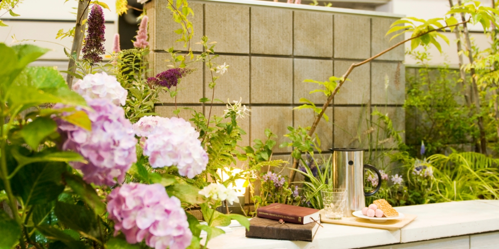 ベンチの使い方や目線を計算して配置した植栽が「狭くてもこんなに豊かな空間になるんだね!」とご好評いただきました。