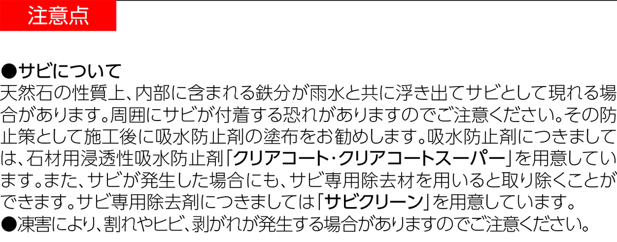 商品の使用上の注意点を掲載しています。