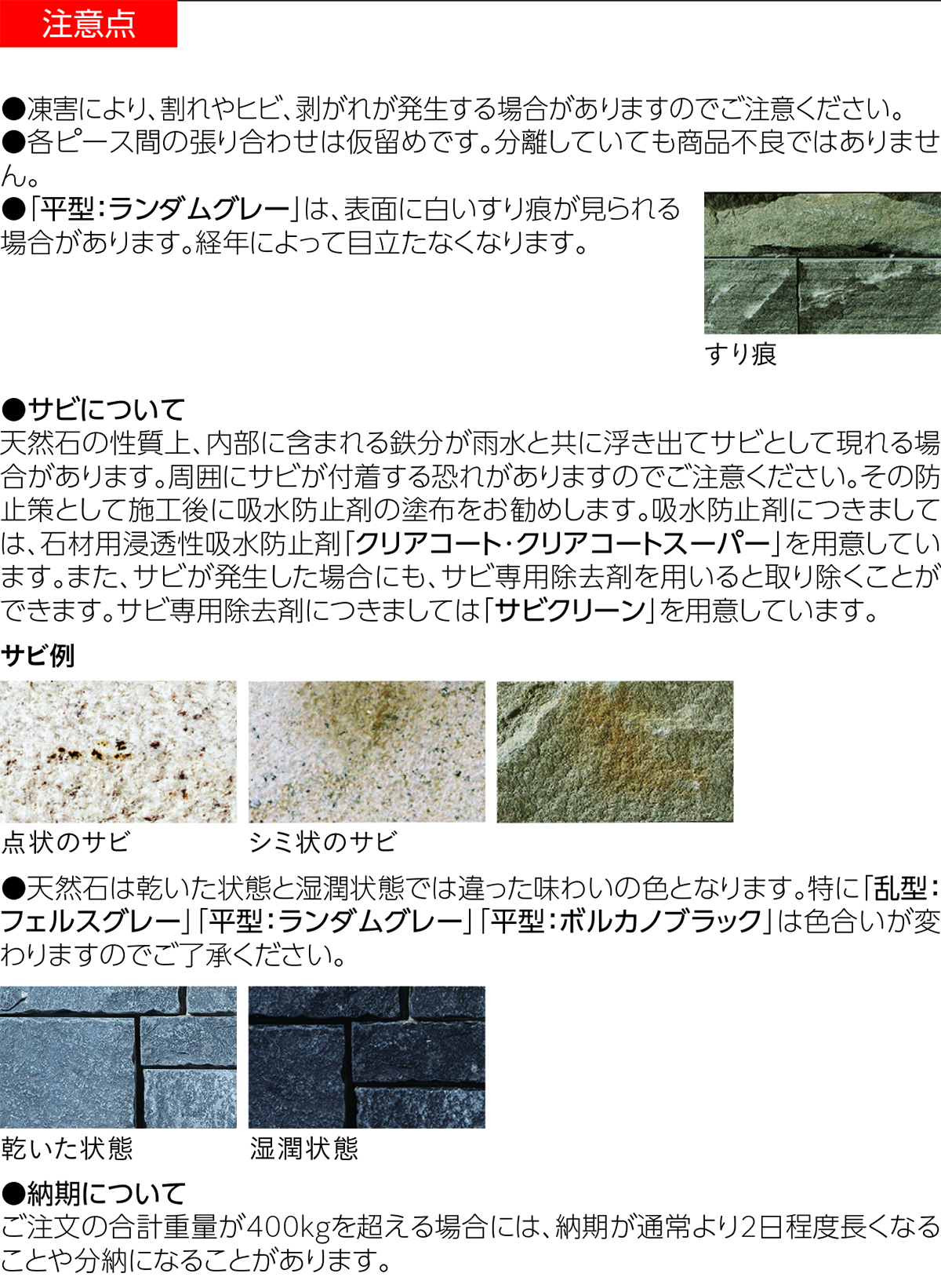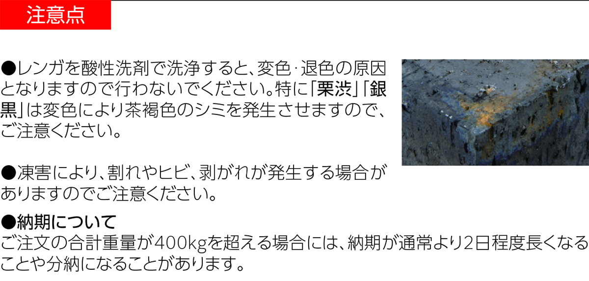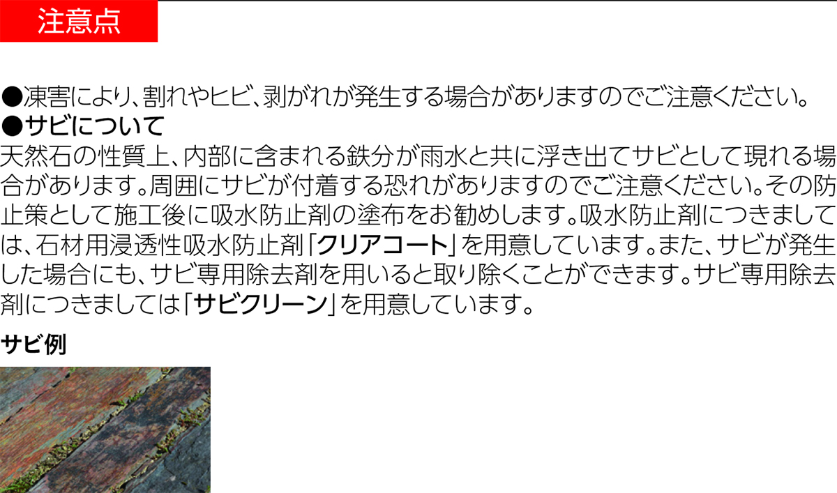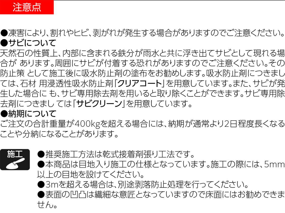 商品の使用上の注意点を掲載しています。
