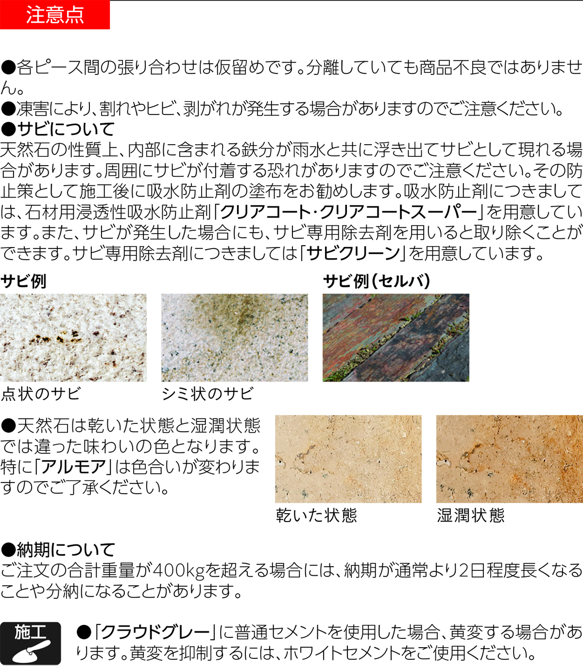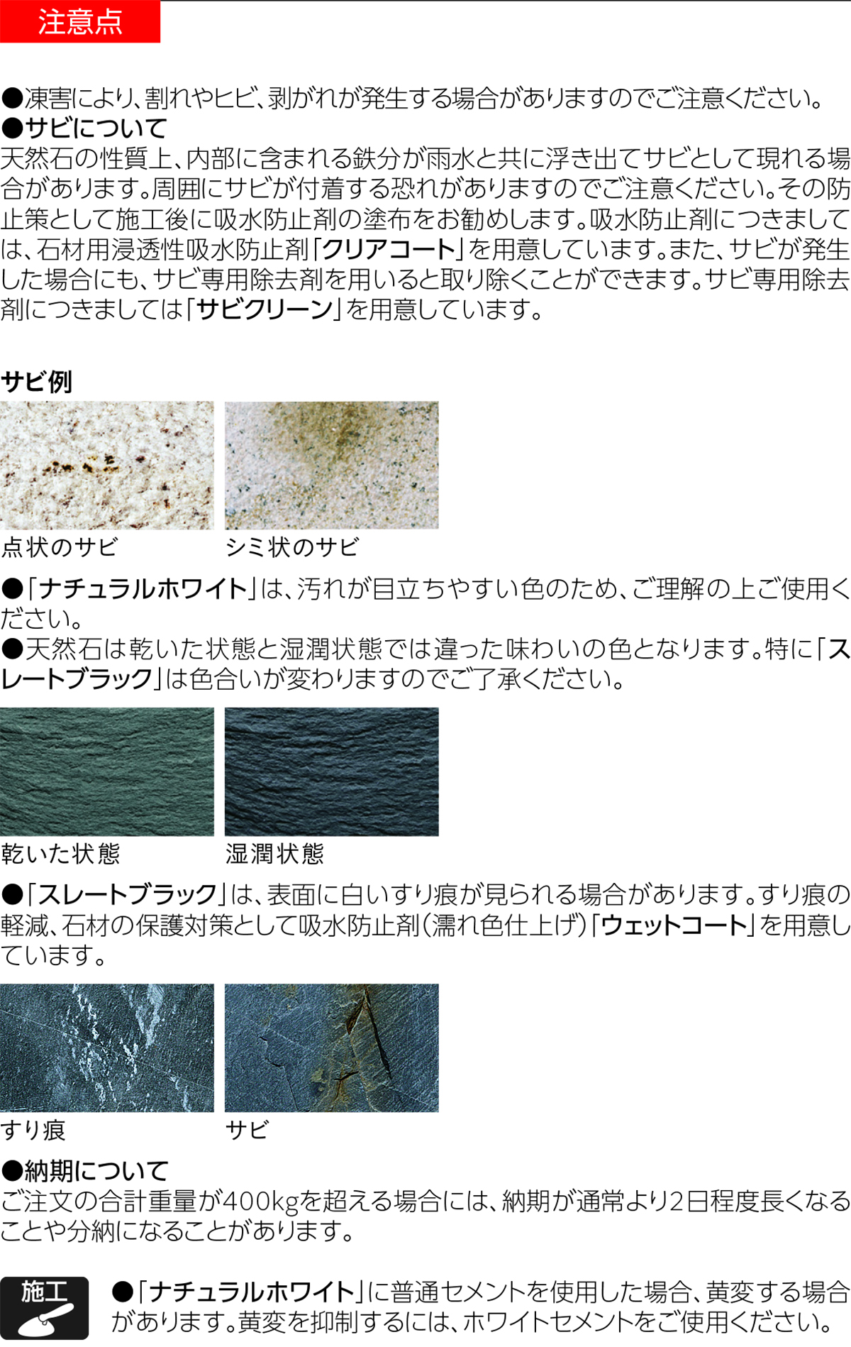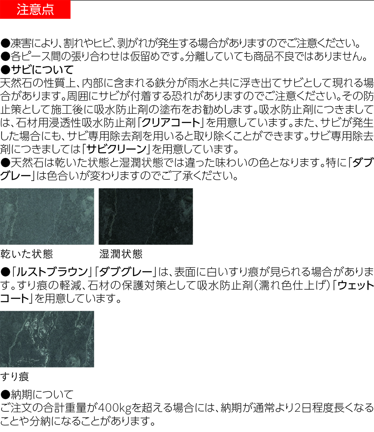 商品の使用上の注意点を掲載しています。