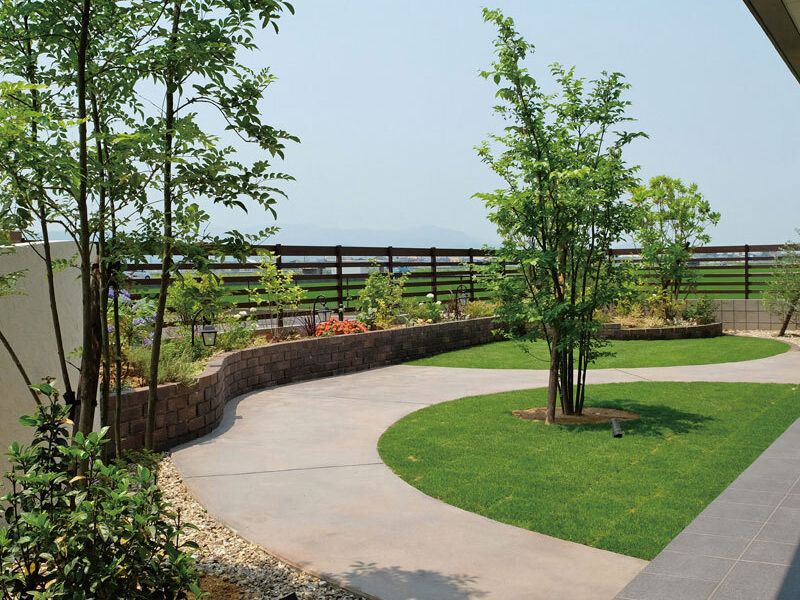 背が低い花壇などは、天端部分が見えるように、花壇よりも少し高い位置で構えることで、花壇の形も美しく見せられます。 |