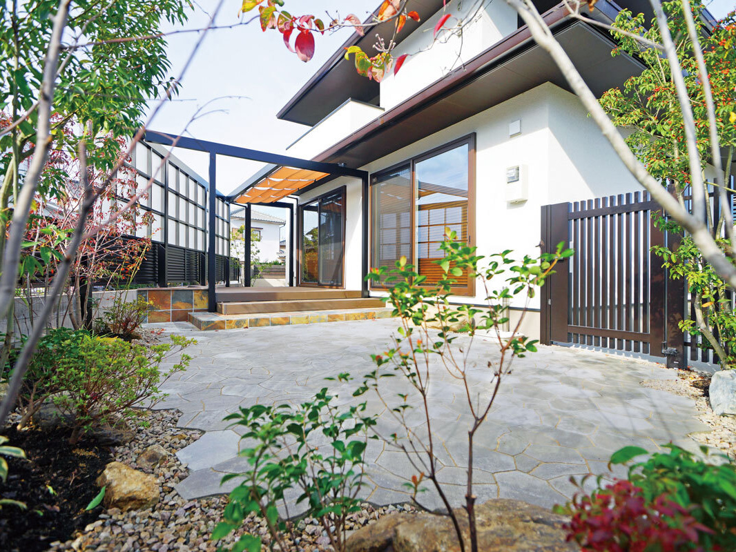 広い範囲が入るよう対角線上で構えると、広がりや奥行きを感じさせます。手前に植栽などの要素を配置することも有効です。 |