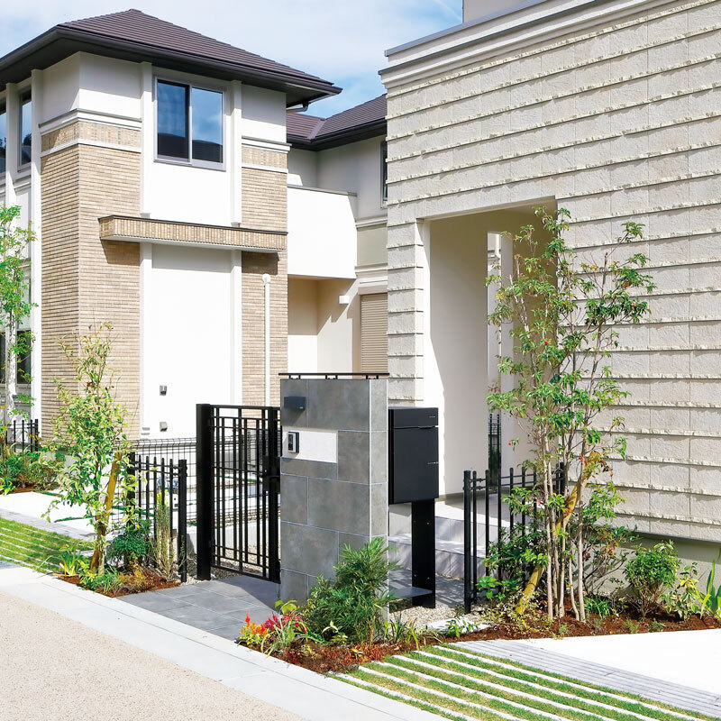 エクステリア資材と違い、空間全体を撮影するのではなく、その空間に配されたユニットウォールや宅配ポストなどのアイテムにクローズアップして、そのモノの特徴を伝えます。